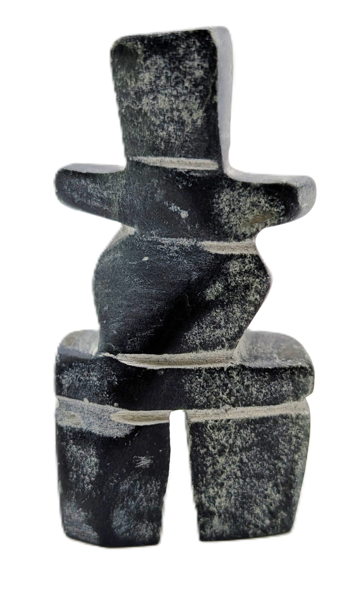 This "Inukshuk" soapstone carving was created by Inuk artist Kuzy Curley from Kinngait, Cape Dorset, Nunavut.