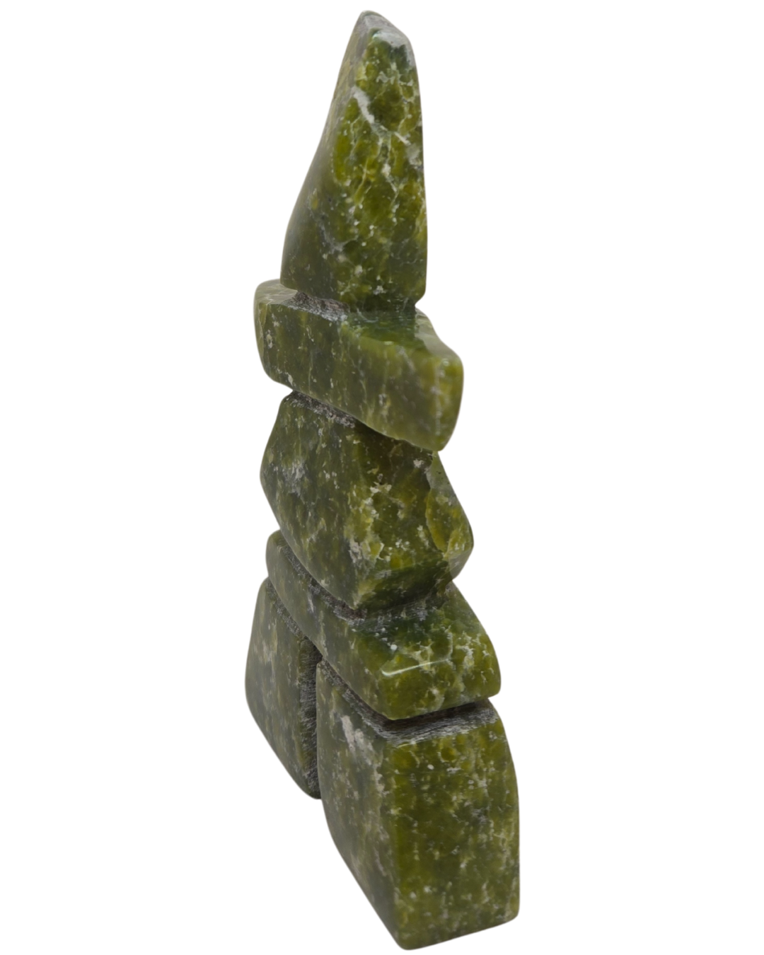 This "Inukshuk" soapstone carving was created by Inuk artist Kuzy Curley from Kinngait, Cape Dorset, Nunavut.
