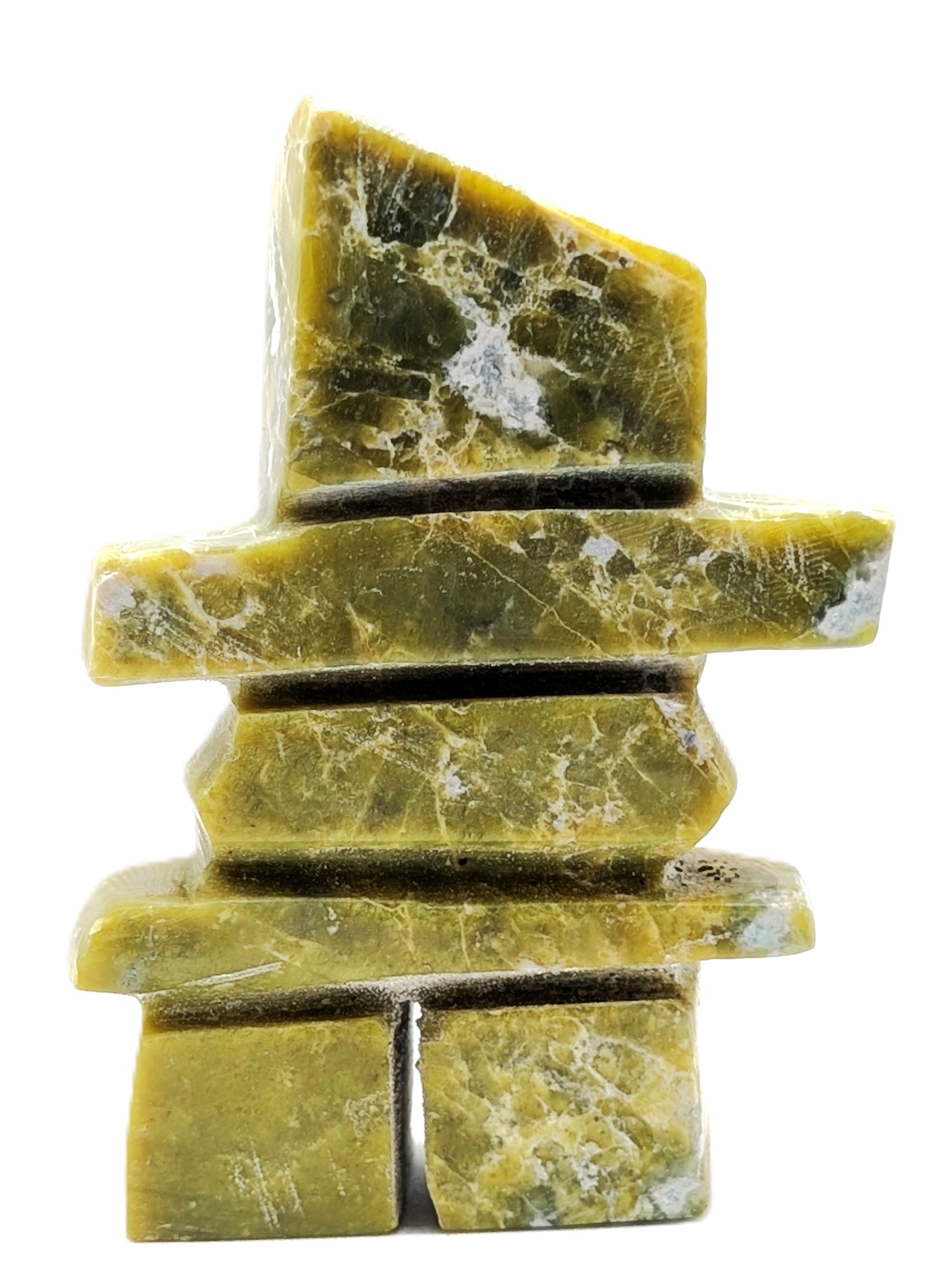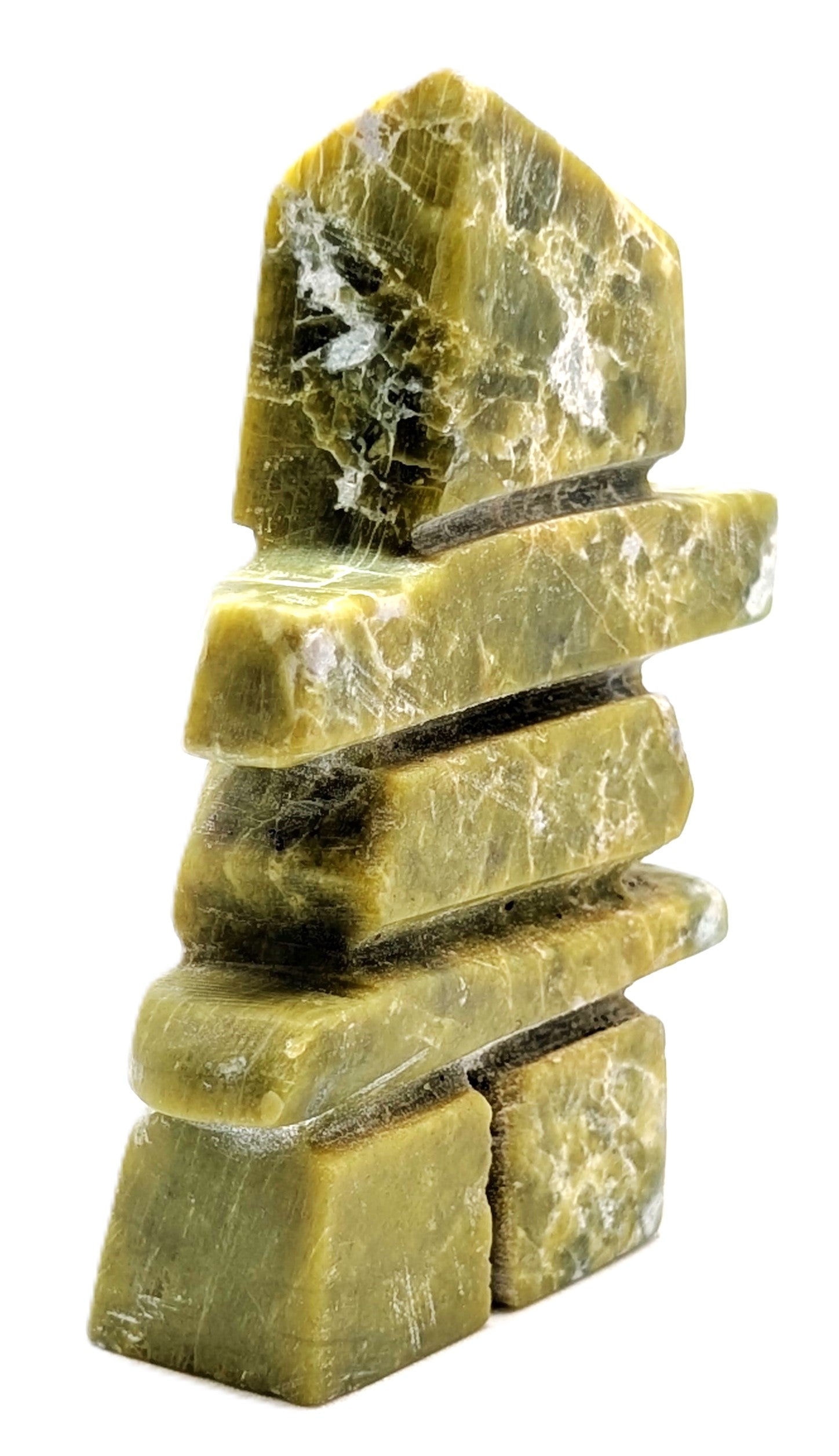 This "Inukshuk" soapstone carving was created by Inuk artist Kuzy Curley from Kinngait, Cape Dorset, Nunavut.