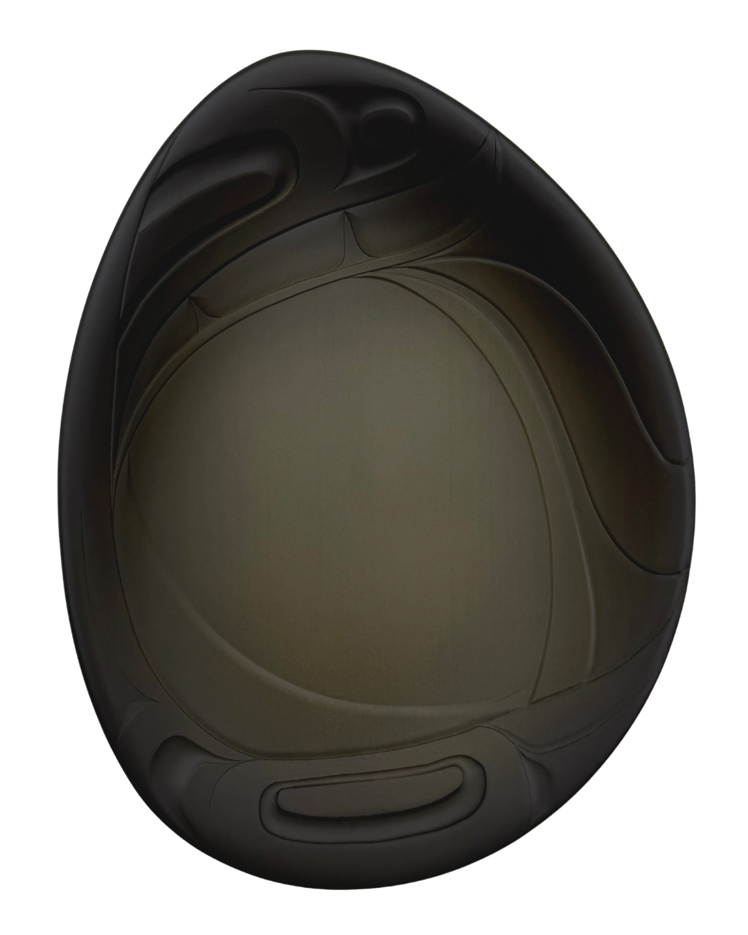 This First Nations serving bowl was designed by Canadian First Nations artist Corrine Hunt. Made from recycled glass, this bowl is a unique shape, sure to be a show stopper on any table.