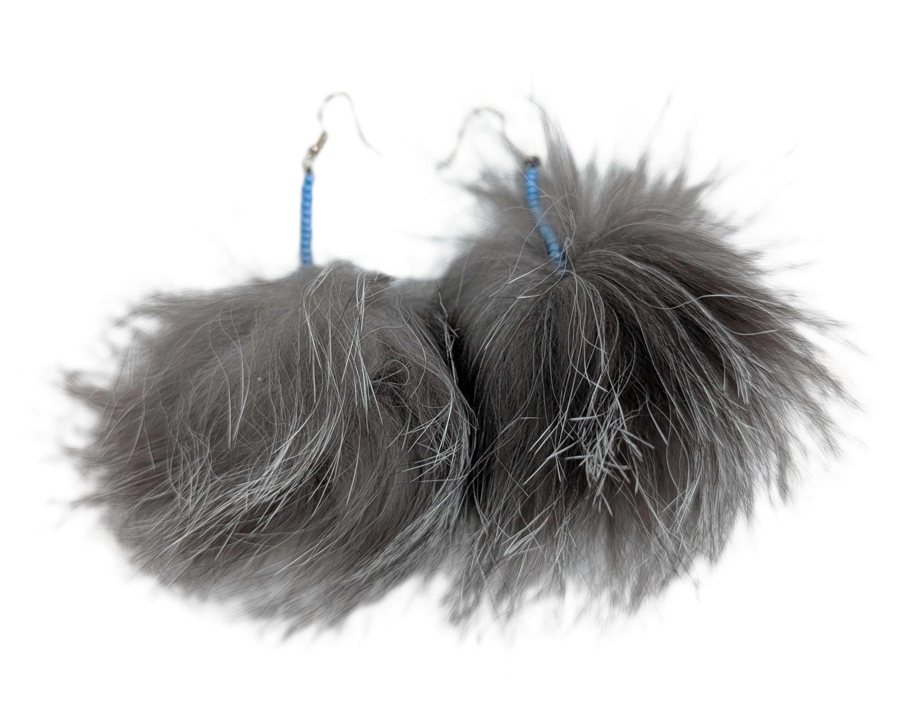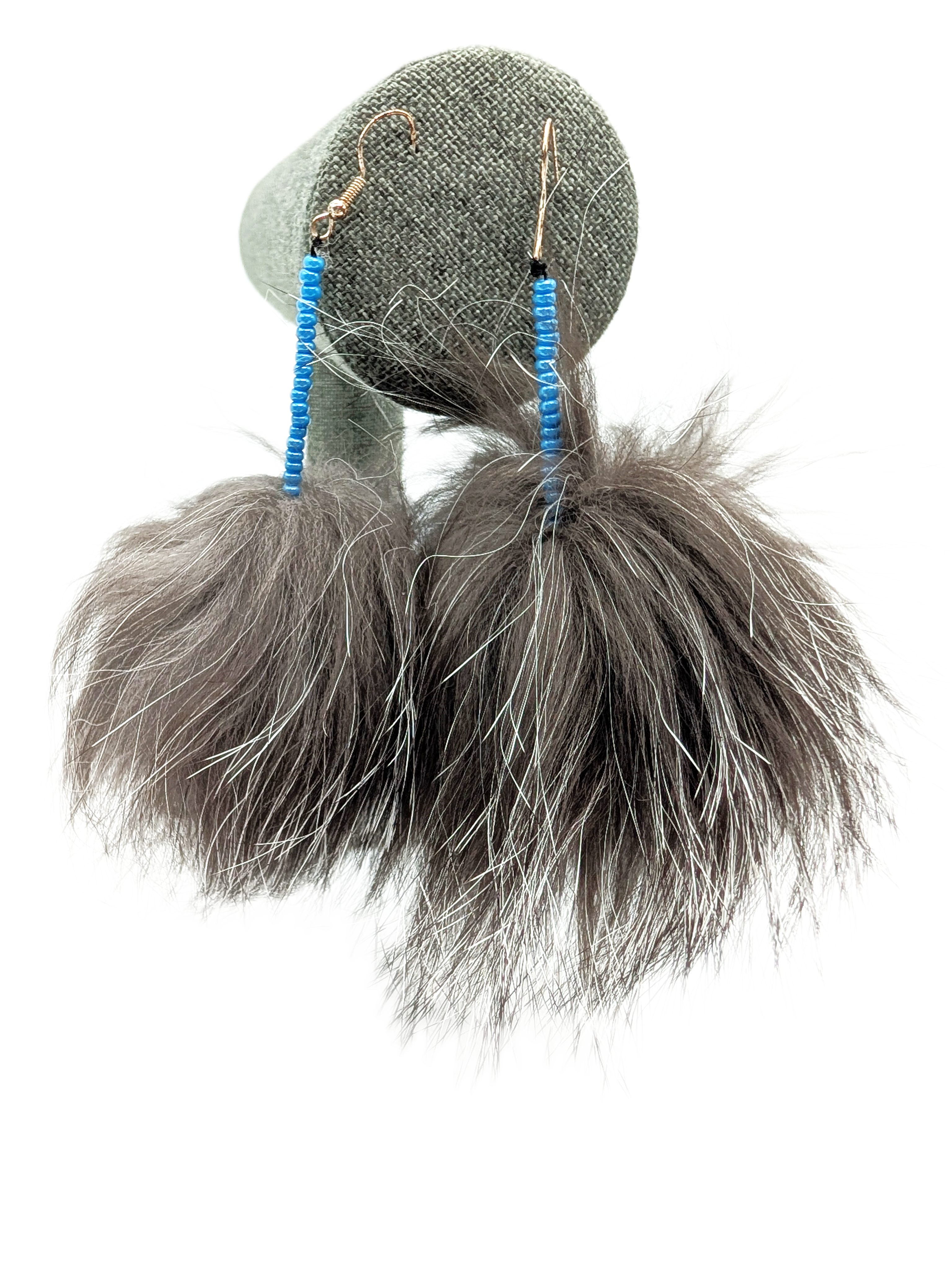 These beaded sealskin earrings were handcrafted in Quaqtaq, Quebec, Canada. A99-40245.
