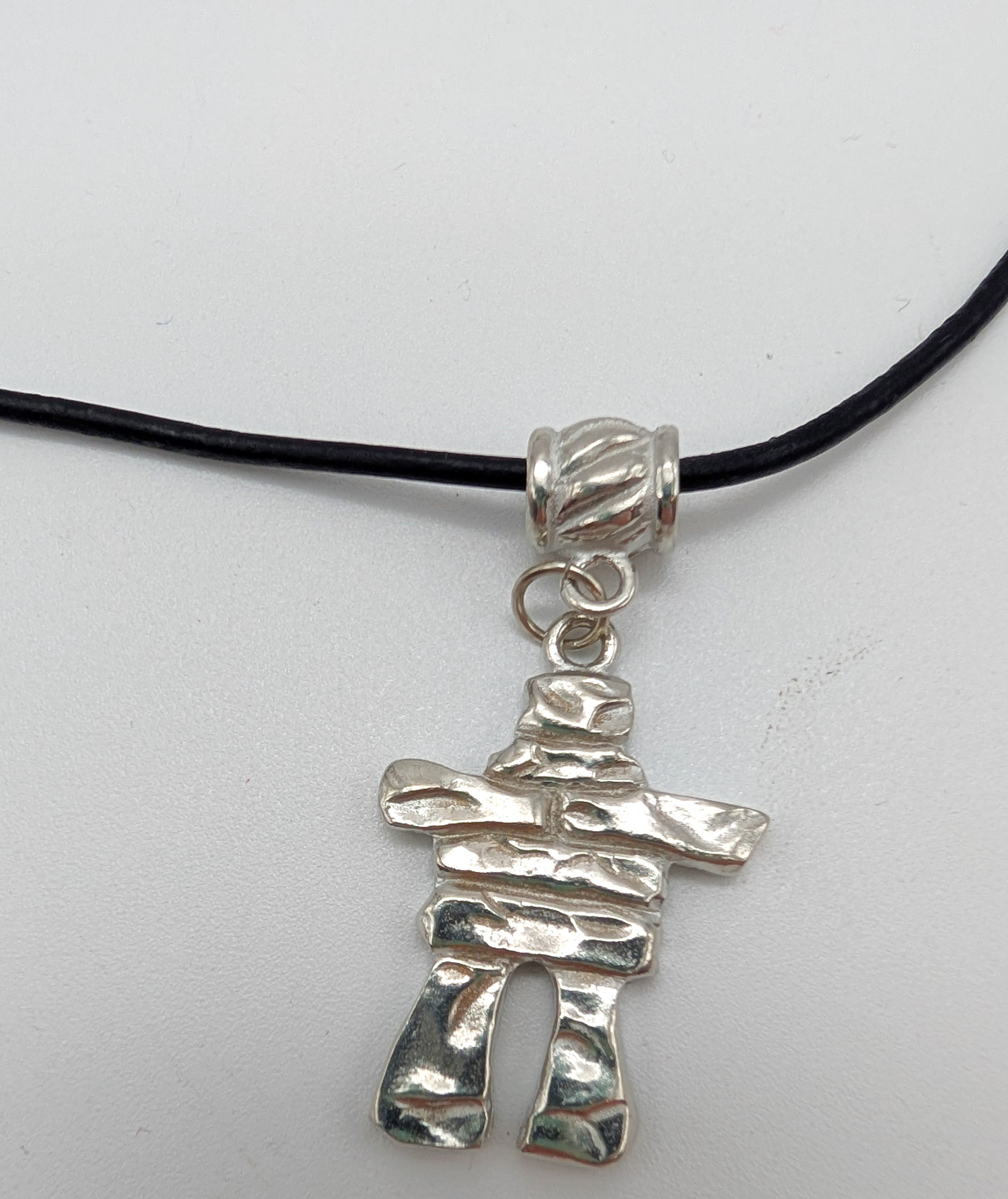 This black strand leather necklace features the iconic Canadian Inukshuk pendant.